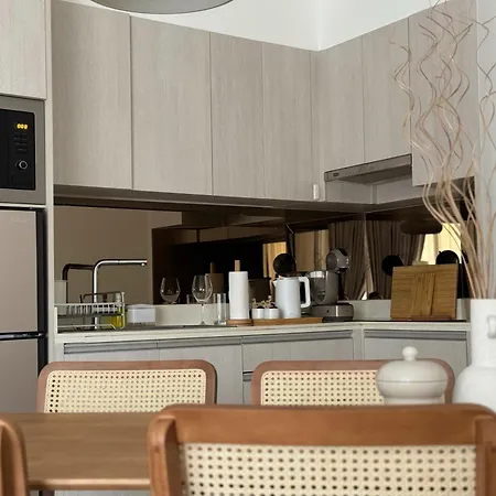 Een ingerichte keuken met koffie- en theefaciliteiten, een koelkast, glaswerk is beschikbaar als onderdeel van de zelfvoorzienende voorzieningen van het appartement.